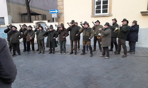 Unsere Jagdhornbläser auf dem Weihnachtsmarkt in Reutlingen – Stimmungsvolle Klänge und regionale Genüsse...
