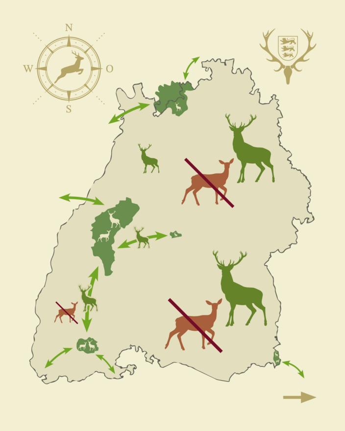 Soweit bekannt, doch nun gelten neue Rahmenbedingungen: Außerhalb der Rotwildgebiete (RWG) wurde das Abschussgebot für männliches Rotwild aufgehoben. Auch innerhalb der RWG sollte diese Maßnahme als Beitrag zur Verbesserung der genetischen Situation des Rotwildes betrachtet werden. Dabei gilt, dass die Schonung wandernder Hirsche ein erster Schritt ist und durch weitere Maßnahmen ergänzt werden sollte. Innerhalb der RWG muss die Abwanderung durch angepasste Abschusspläne ermöglicht und unterstützt werden sowie ein erweitertes Verbundkonzept zwischen den Gebieten umgesetzt werden.